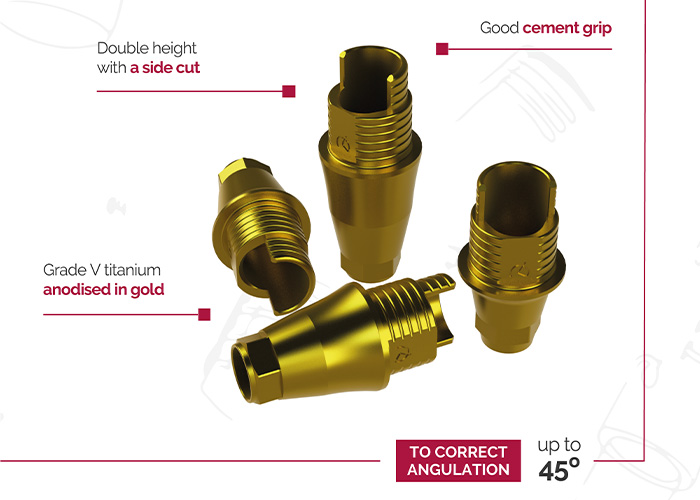 The intelligent solution for angled rehabilitations in a 100% digital workflow. Key advantages: 🔹 US Patent 10,130,447 🔹 External retentions for secure cementation 🔹 Double height design with lateral cut 🔹 Angulation correction up to 45° 🔹 Gold-anodised Grade V titanium for superior aesthetics 🔹Different gingival heights available The Dynamic Interface system includes: ✔ Dynamic interface ✔ Angled screw and …