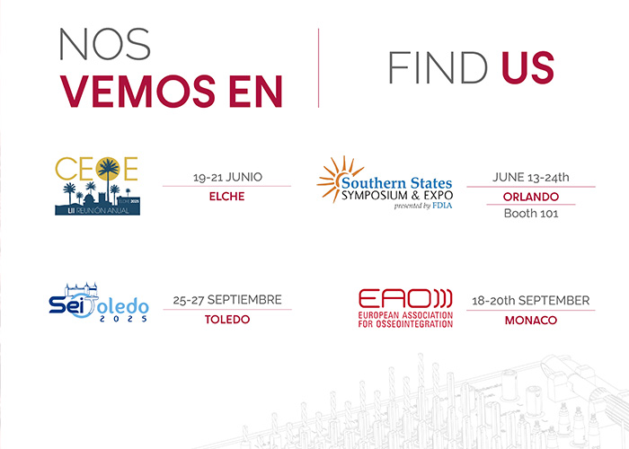 Upcoming events! Next national event will be CEOE Elche and SEI Toledo. Internationally we will be at Southern States Symposium & Expo FDLA y EAO Monaco. Looking forward to the next events.