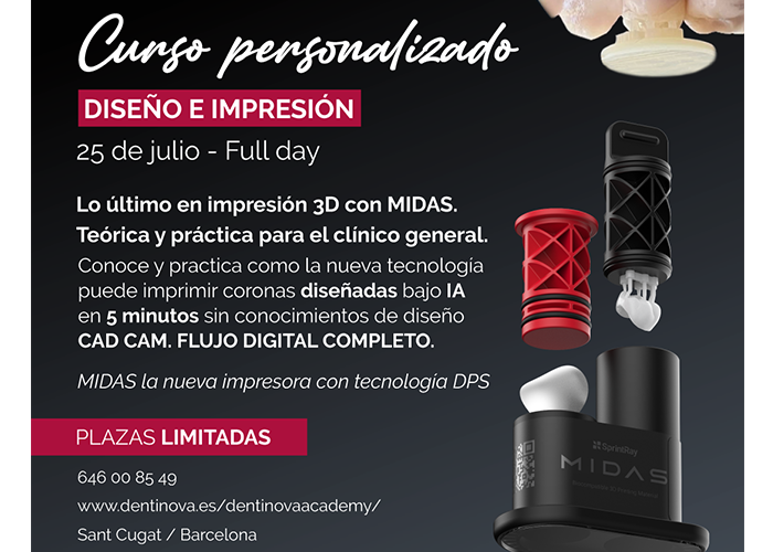 We will learn and practice how the new technology can print crowns designed with AI in just 5 minutes. If you are interested, you only have to register through the Dentinova website or by calling 646 00 85 49. 25th July San Cugat, Barcelona