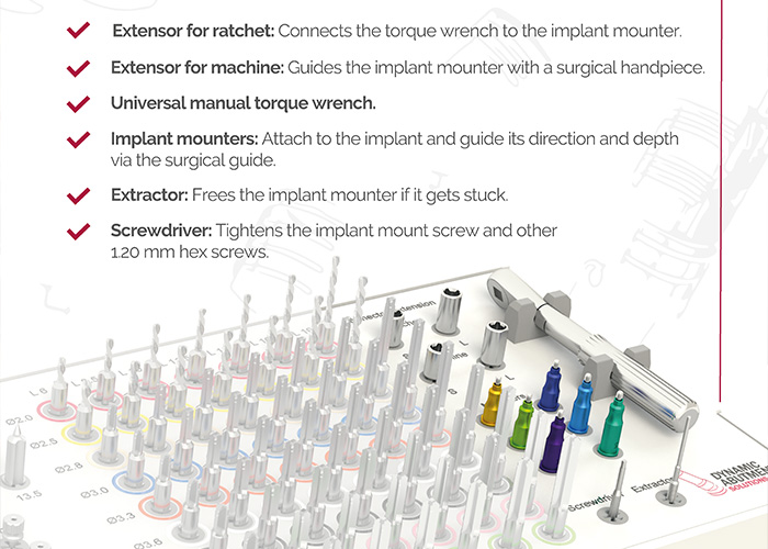 Introducing the DAS Guided Surgery Box: a versatile solution, compatible with all implant systems and designed to enhance every stage of the procedure with precision, control and safety at every step. Get to know a part of its components and discover how it can transform your practice. – Ratchet Extender: Connects the torque wrench to the implant mounter. – Machine …